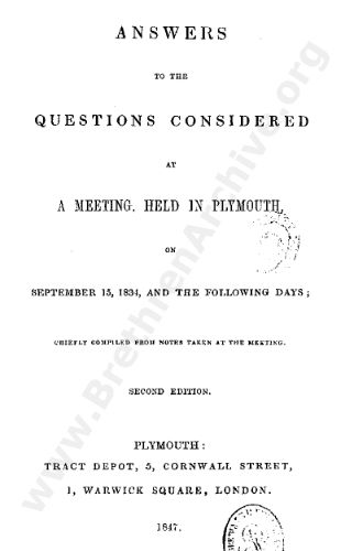 Answers to the Questions Considered at a Meeting held in Plymouth, on Septeber 15, 1834, and the Following Days