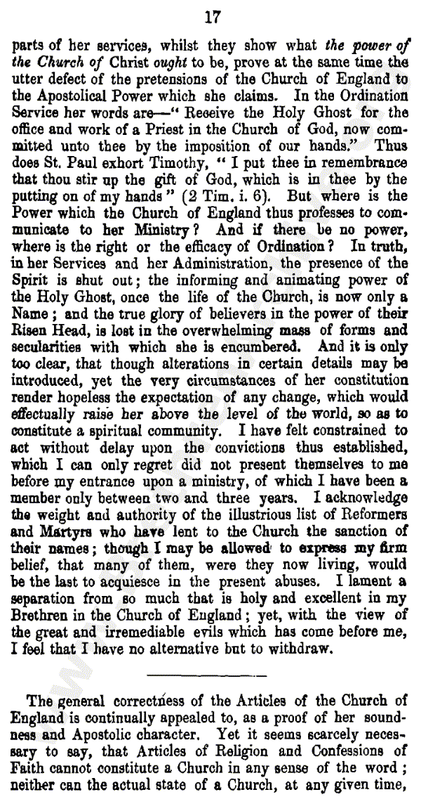 Reasons for Withdrawing from the Church of England