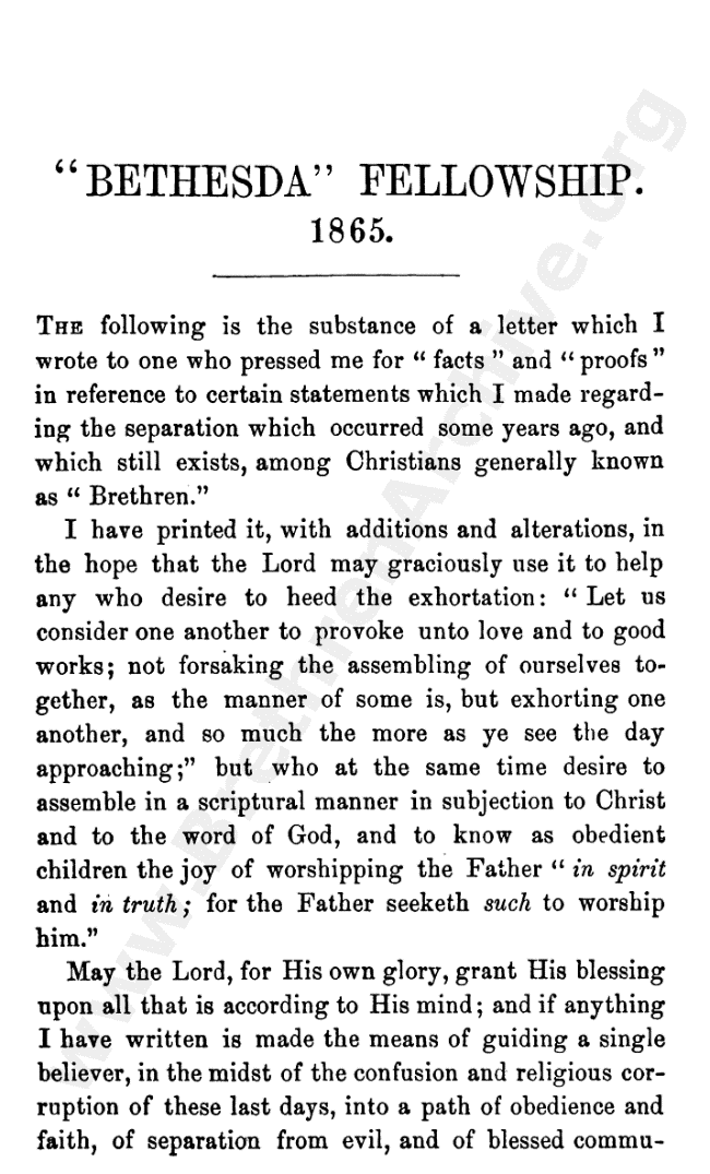 A Letter on Bethesda Fellowship