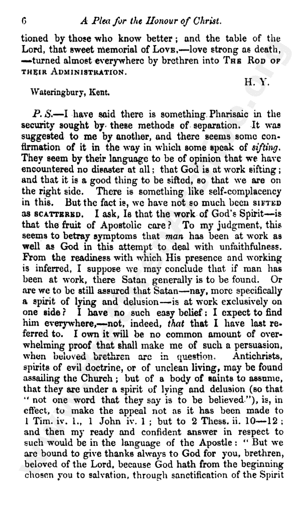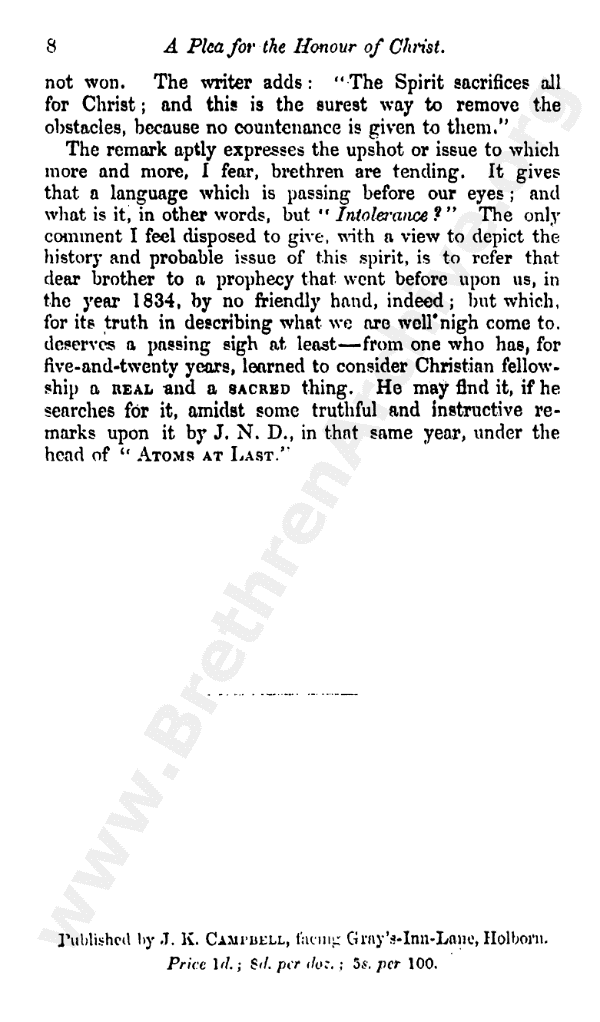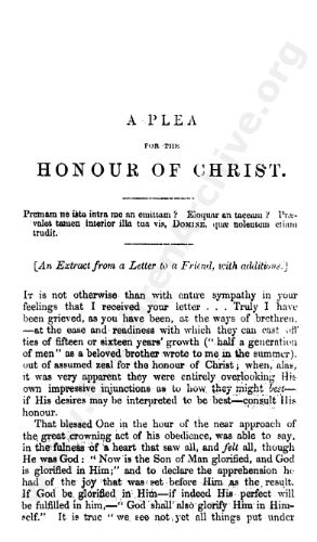 A Plea for the Honour of Christ
