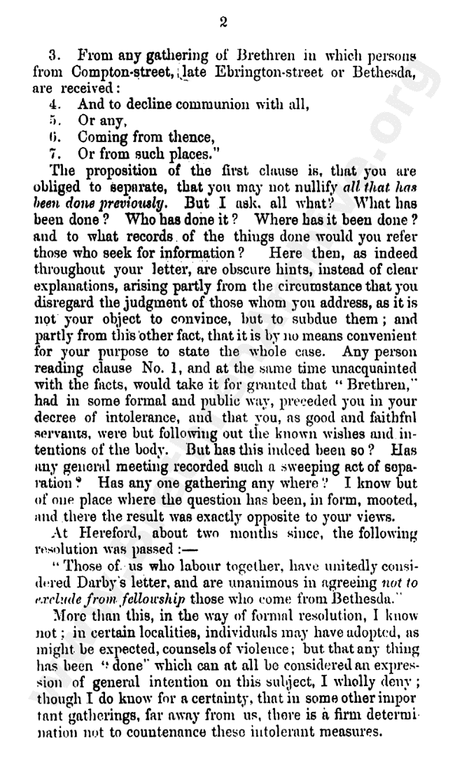 Interesting letter written against the division. Unsure who the author is, style is similar to those of Andrew Jukes, though signed diferently?