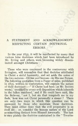 A Statement and Acknowledgement Respecting certain Doctrinal Errors