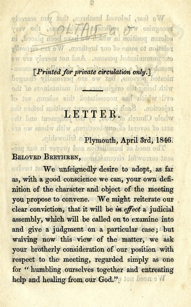 Letter from Saints in Plymouth to London