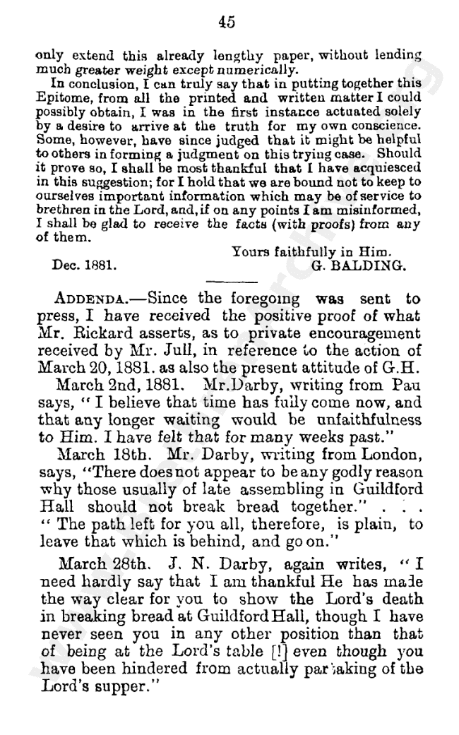 Have historical interest in Brethren movement although left them many years ago,