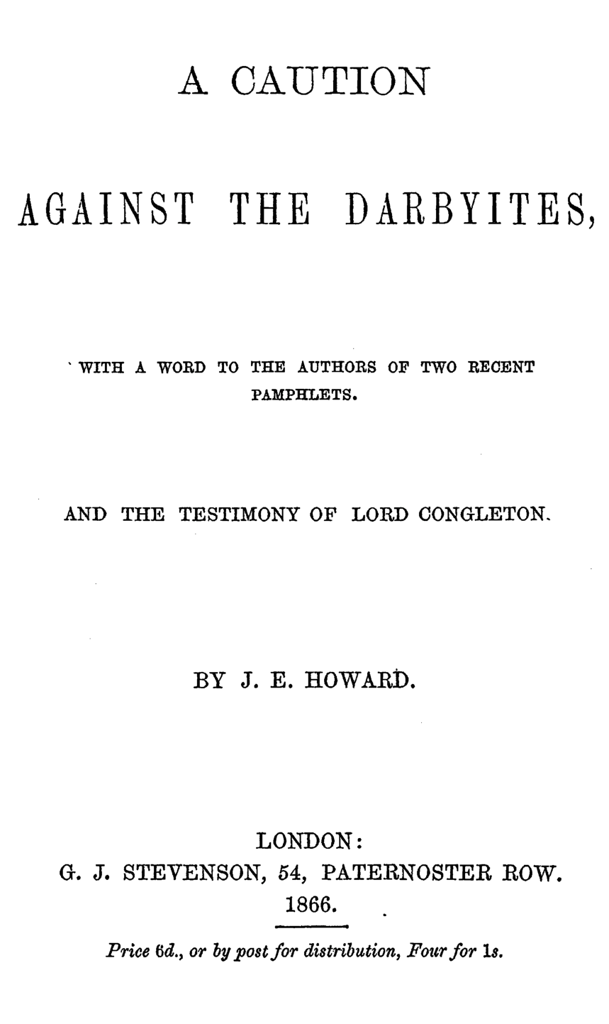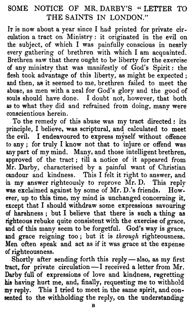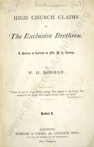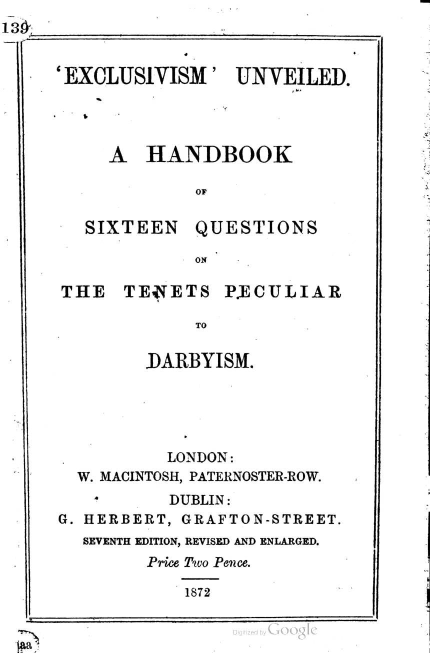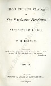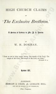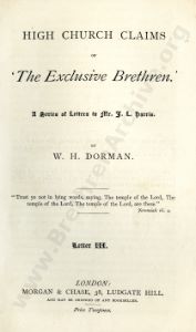 1875 Written in reply to 'On the Teaching of the Exclusive Brethren by An Inclusive' 34 Pages