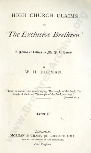 High Church Claims of 'The Exclusive Brethren', A Series of Letters to Mr J.L. Harris - Letter 5