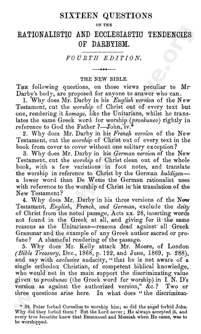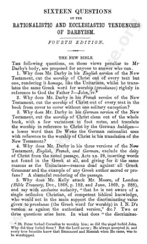 Sixteen Questions on the Rationalistic and Ecclesiastic Tendencies of Darbyism
