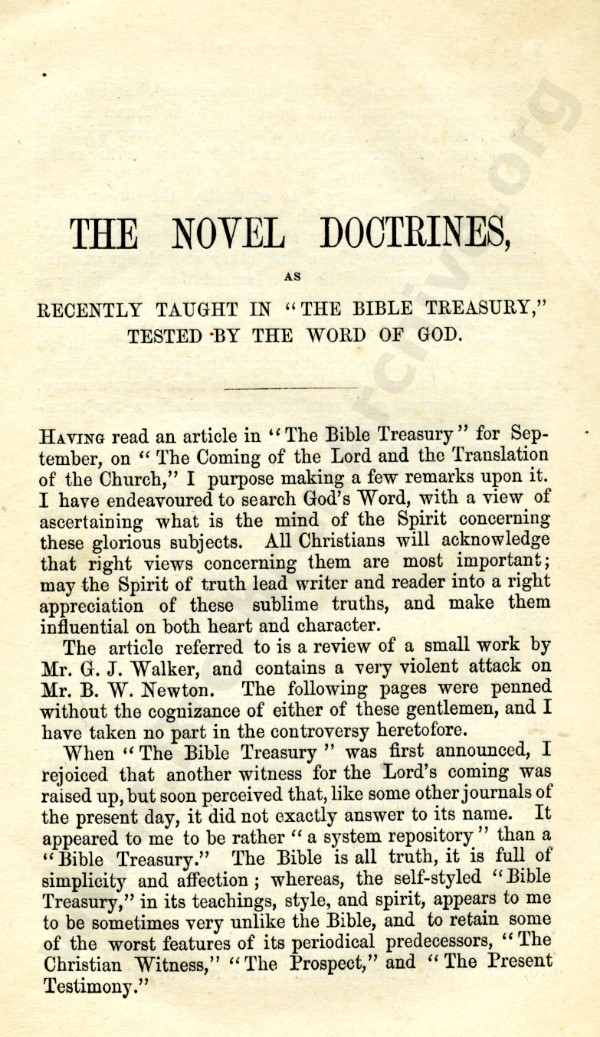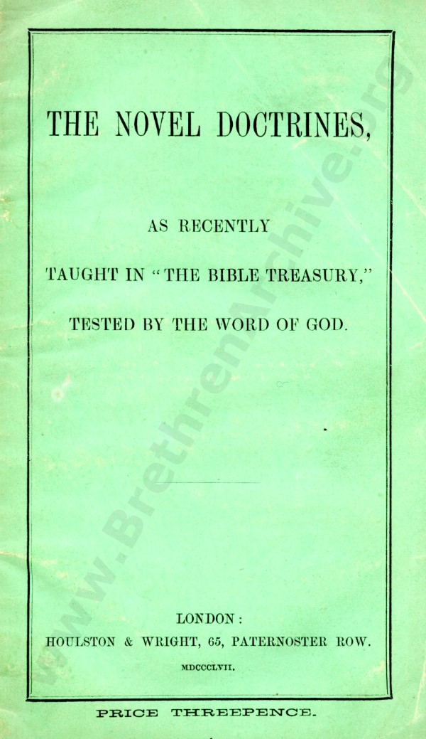 The Novel Doctrines, as Recently Taught in "The Bible Treasury," Tested by the Word of God