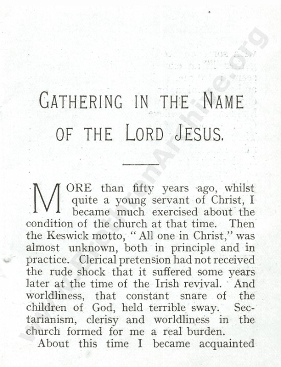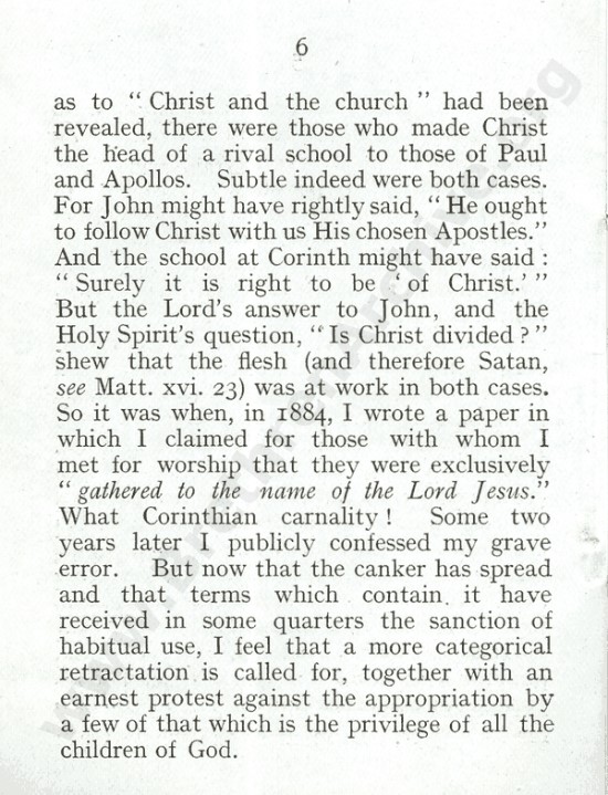 That’s right. And what’s in a preposition? T. Neatby by his own admission, gathered for many years with those who “gathered unto the Name of the Lord Jesus,” and then it changed for him.