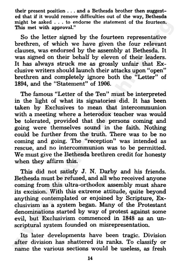 Hi Tom , do you have the edition of this tract that has the appendix by Harold St John? It references a MS book in the possession of one of Geo Müller’s successors which apparently disproves JND’s account of the 1848 events re Bethesda. Second point: I was told by Edwin Cross that at the close of his life HPB did enjoy fellowship again with Exclusive Brethren !