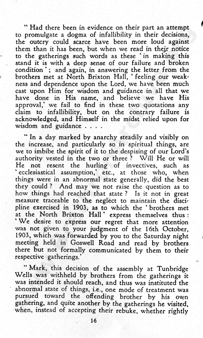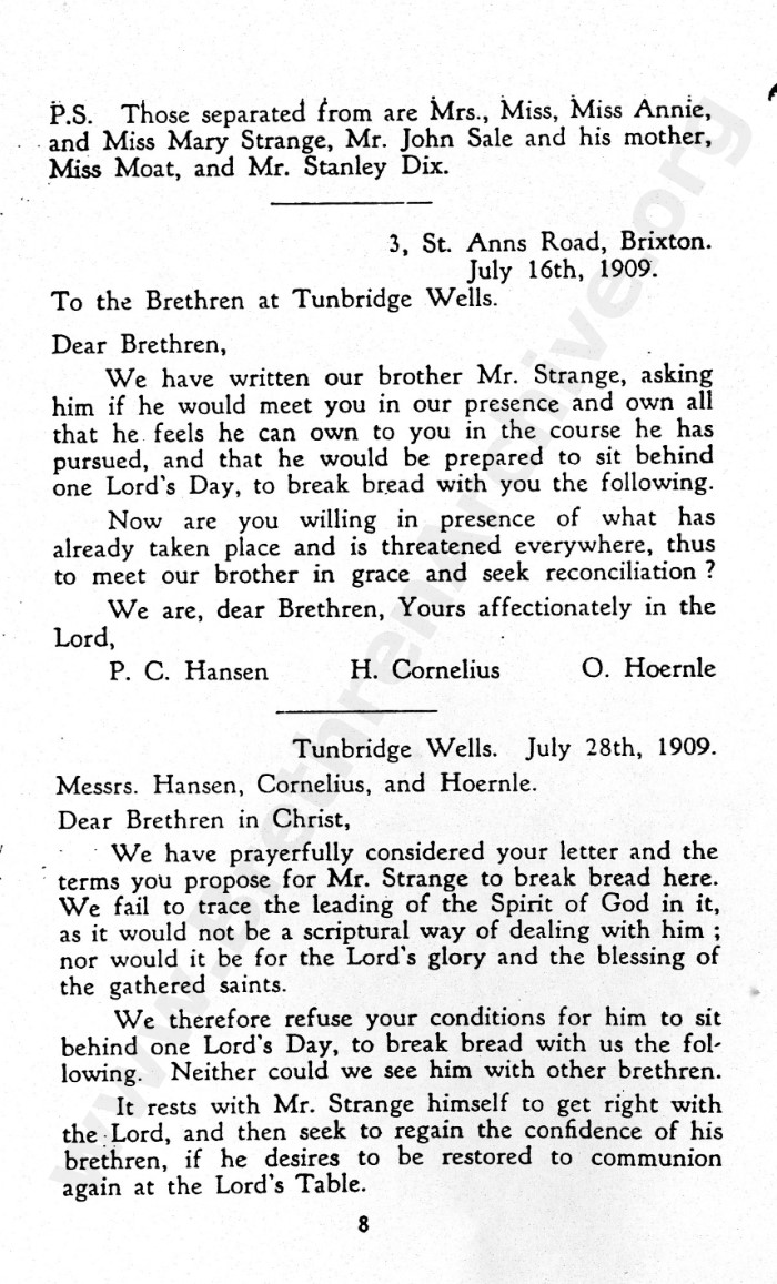 Brian, as I have been given to understand and have already mentioned, the brethren at 41 York Road, Tunbridge Wells, in a later generation owned that the decision regarding Mr Strange as wrong.