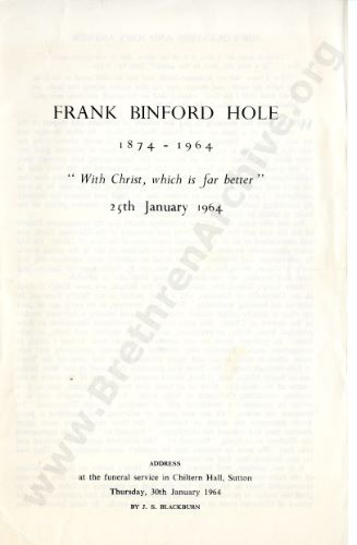 Frank Binford Hole - Address at Funeral