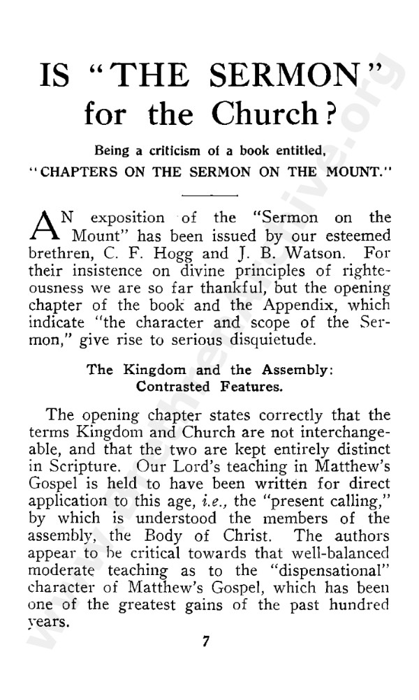 'A Criticism of a Book Entitled "Chapters on the Sermon on the Mount" by C.F. Hogg'