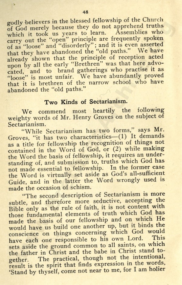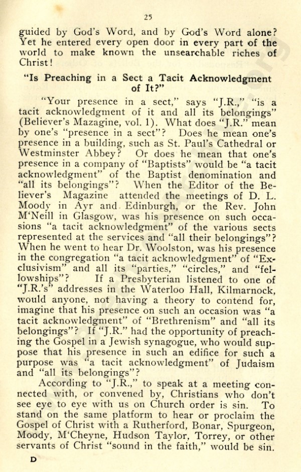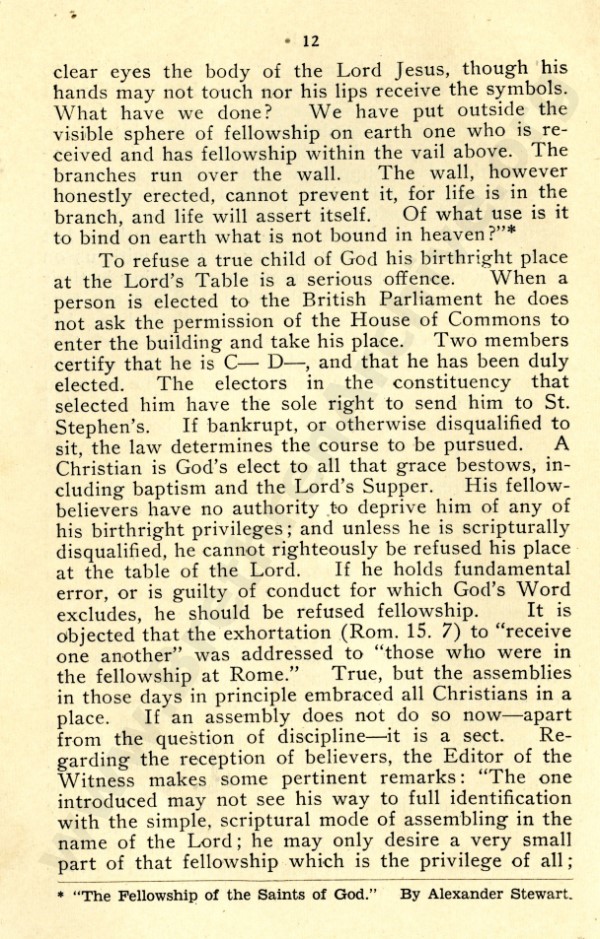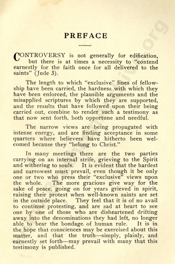 Mr Marshall, and also J R Caldwell as can be seen in the preface, were concerned about an ecclesiastical notion that has by now spread throughout the "open" meetings, and was my reason for writing "Two Churches: the Question of the Church and Churches?"