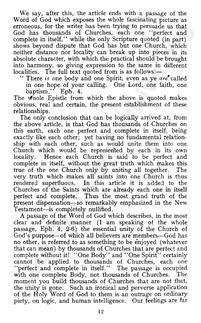 I regard this from WEV as completely absurd. It is clearly a doctrine being forced into the Scriptures and the Scriptures are being explained away to suit. It has been claimed by several leading OB teachers that the doctrine of the church of God embracing all true Christians living on earth is "exclusivism" and for that reason alone is to be rejected.