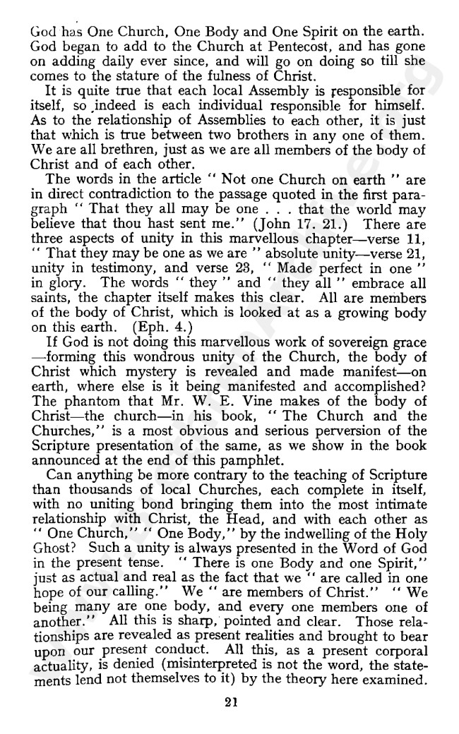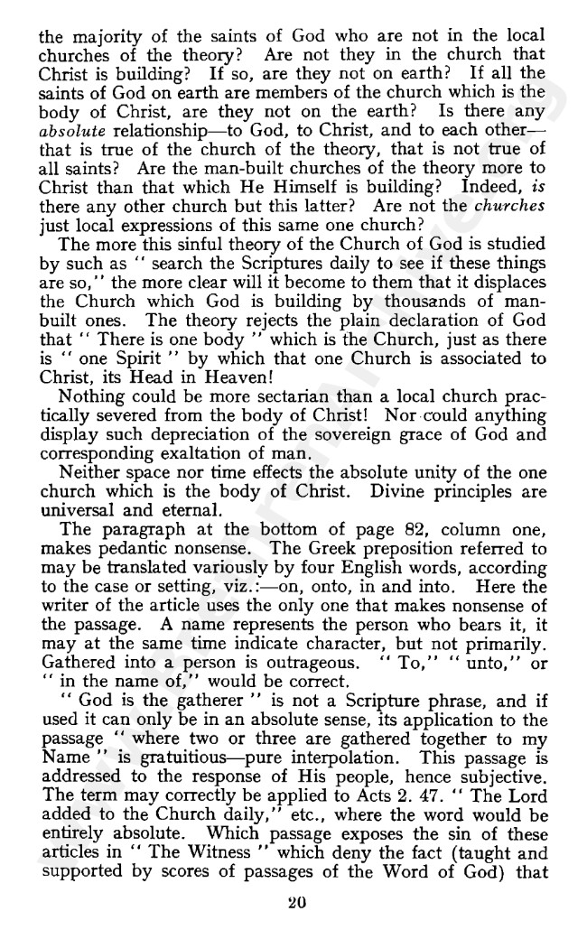 W R Lewis then joined with W E Vine and wrote “Wrong Ideas On the Church” by way of a response to WWF in March 1949, Mr Fereday responding to it in May of that year with an article bearing the same title.