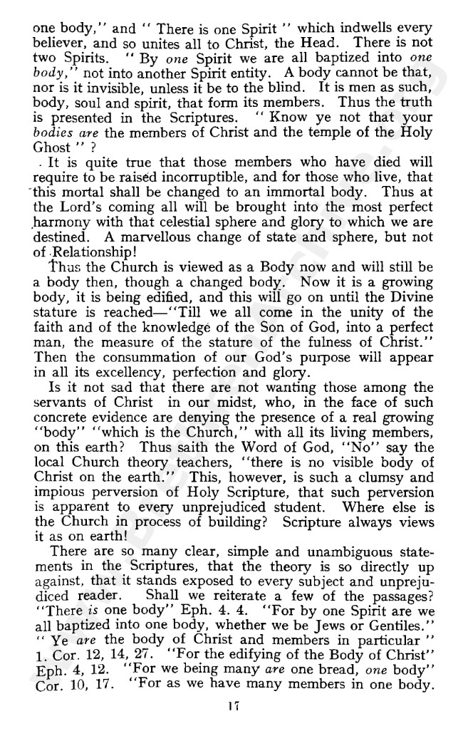 I regard this from WEV as completely absurd. It is clearly a doctrine being forced into the Scriptures and the Scriptures are being explained away to suit. It has been claimed by several leading OB teachers that the doctrine of the church of God embracing all true Christians living on earth is "exclusivism" and for that reason alone is to be rejected.