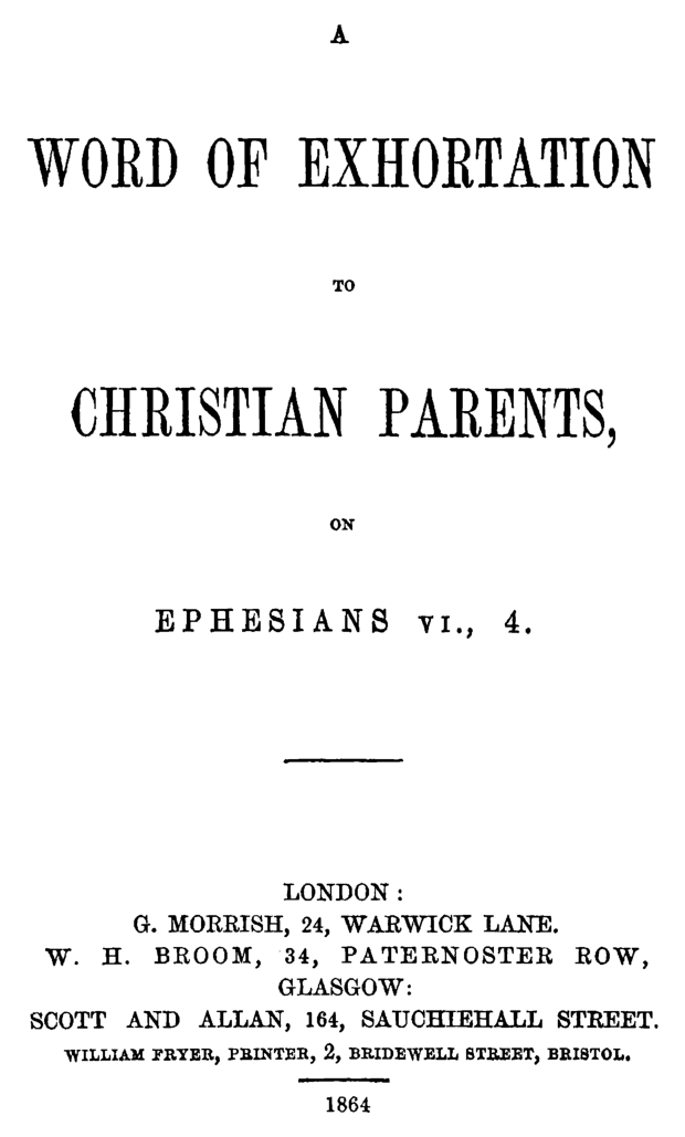 A Word of Exhortation to Christian Parents on Ephesians vi. 4