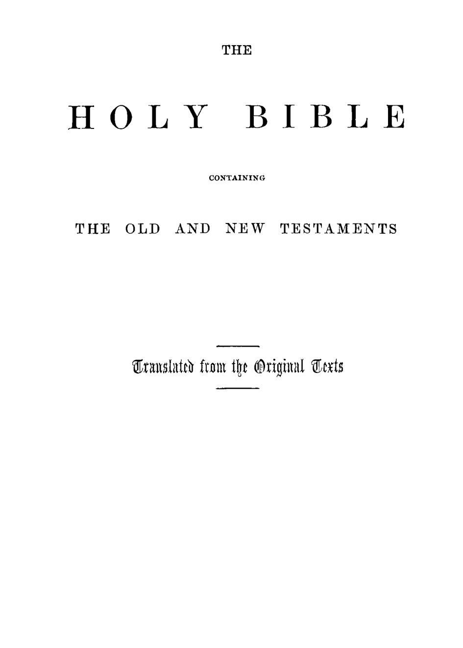 The Holy Bible, Containing the Old and New Testaments - Translated from the Original Texts
