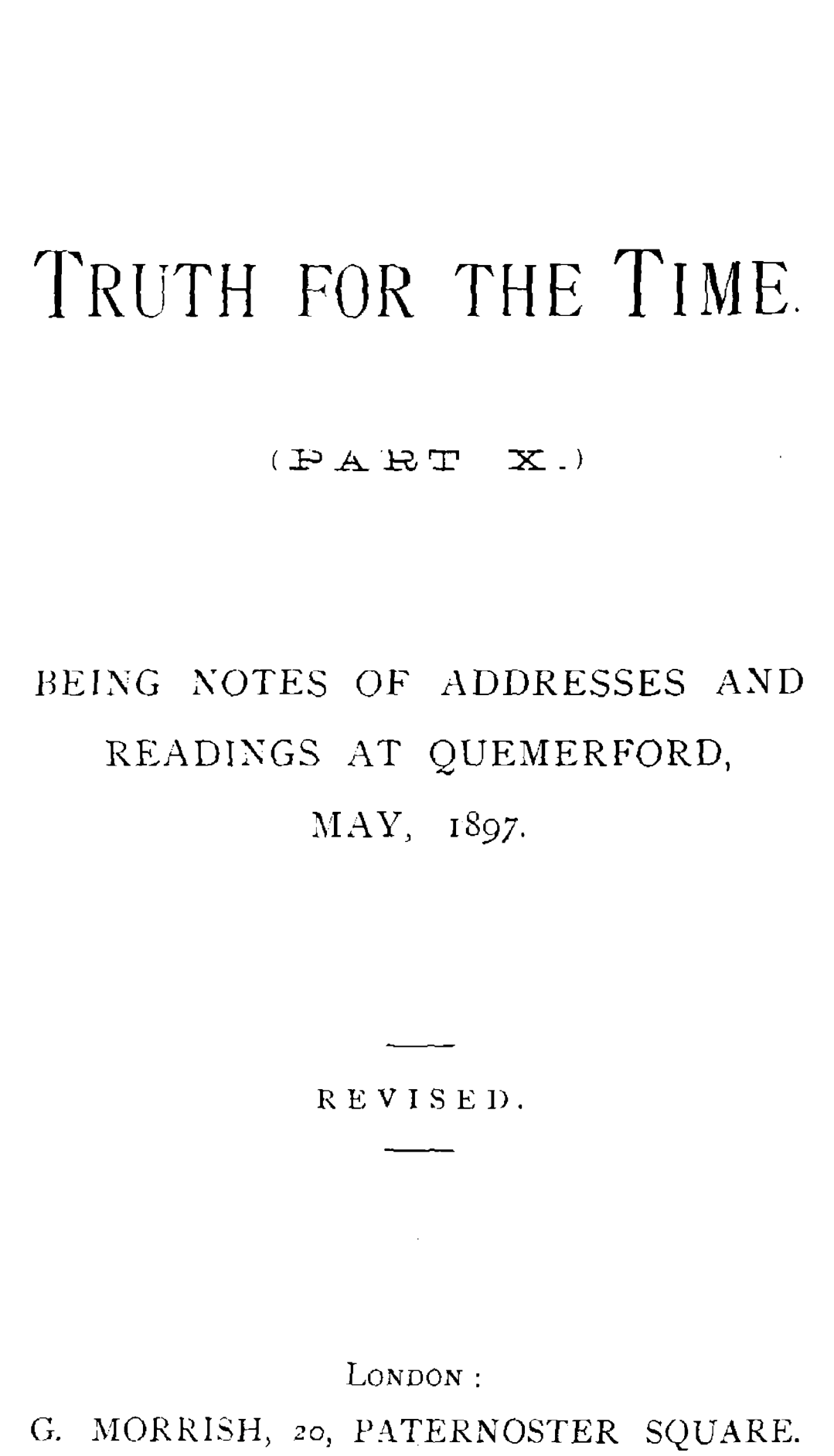 Notes of Addresses and Readings at Quemerford 1897 - May 1897