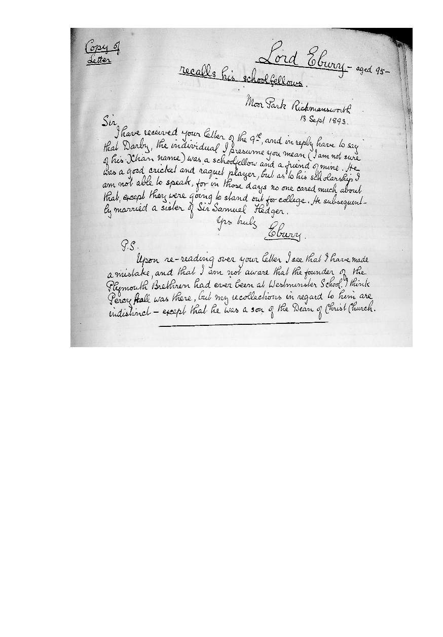 1893-09-13 / Lord Ebury Recalls His Schoolfellows
