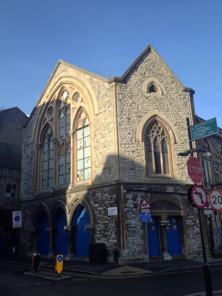 A plaque on a nearby street commemorates the 'Site of the Foundery' - John Wesley's first London base, and bookroom.