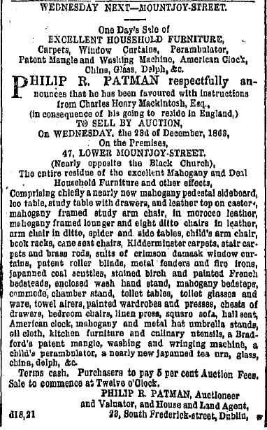 I have come into possession of a Bible signed this address, 1855. It only says "Mama's Bible, 27th August 1855, 47 Mountjoy Street, Dublin " just wondering if there was an interest in it? Any historical significance?
