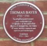 Thomas Bayes 1702 - 1761 Nonconformist minister and mathematician Originator of the statistical theory of probability, the basis of most market research and opinion poll techniques lived here 1731-1761 Fourth centenary