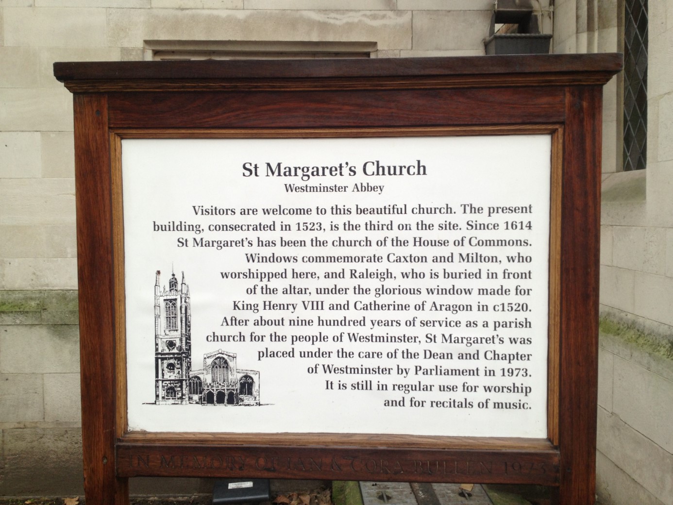 John Nelson Darby was baptised here on March 3rd 1801. St Margaret's was the local parish Anglican church, and stands right next to Westminster Abbey, accross the road from Westminster Palace. It is the parish church of the House of Commons.