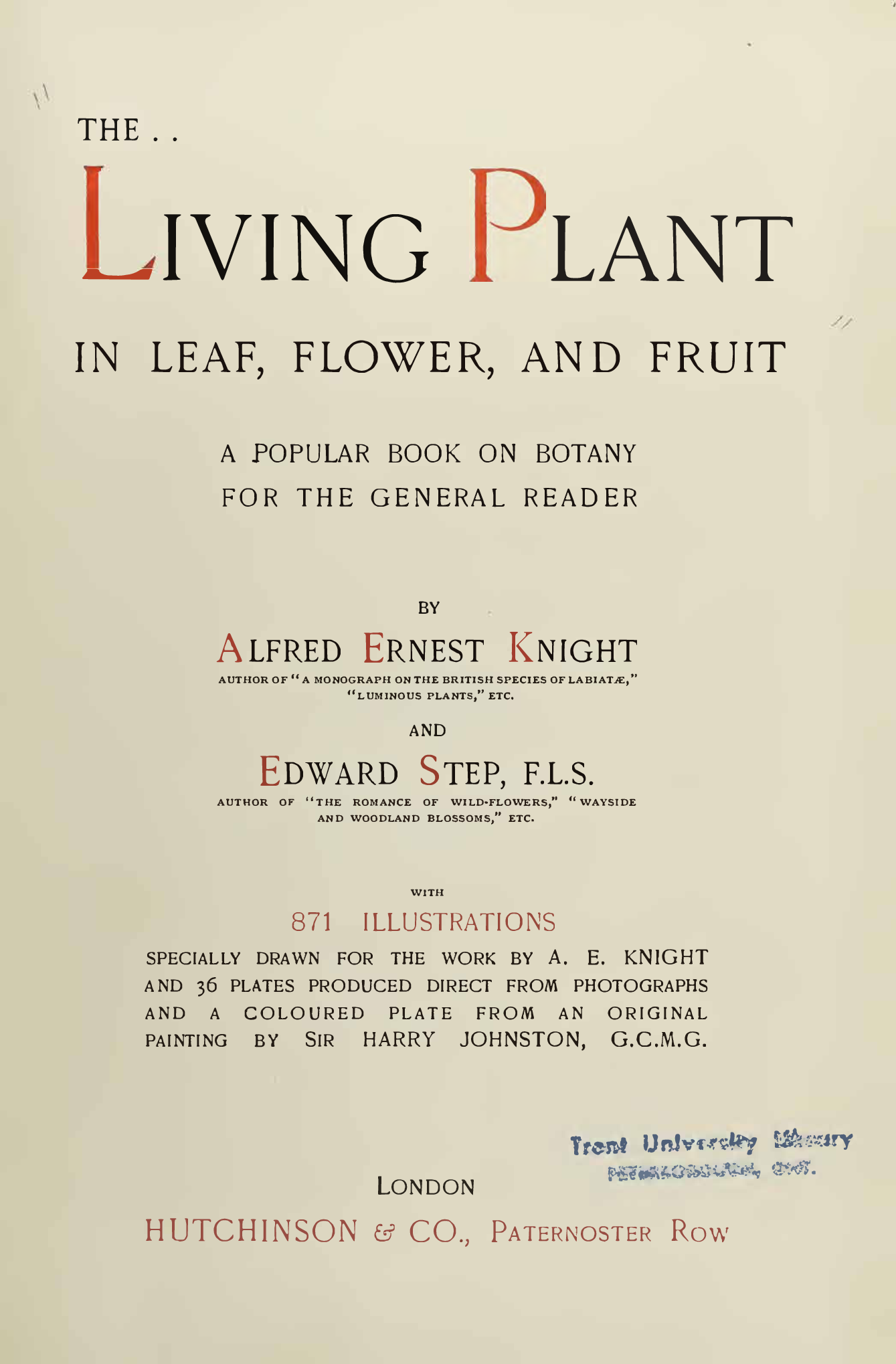 The Living Plant in Leaf, Flower, and Fruit: A Popular Book on Botany for the General Reader