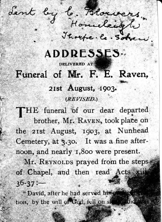 Addresses Delivered at the Funeral of Mr. F. E. Raven