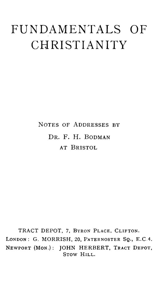 Fundamentals of Christianity. Notes of Addresses at Bristol