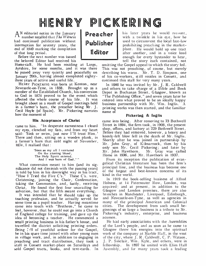 Obituary from The Witness - February 1941