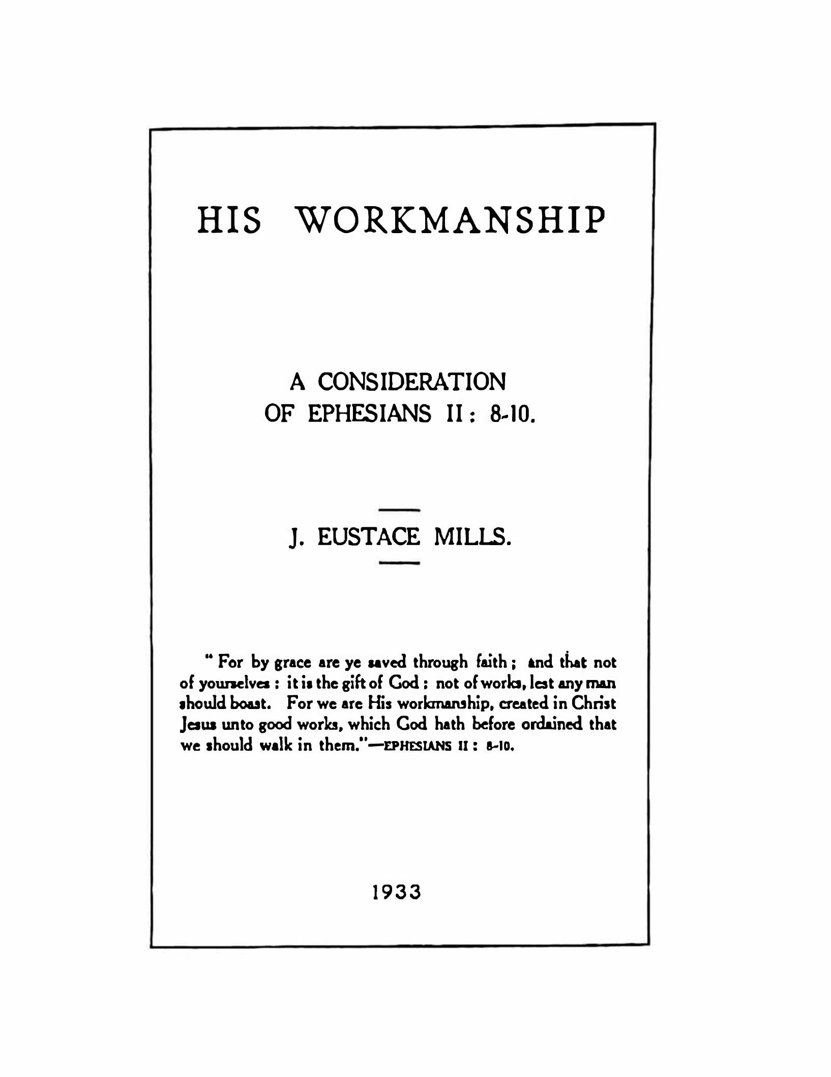 His Workmanship - A Consideration of Ephesians II: 8-10