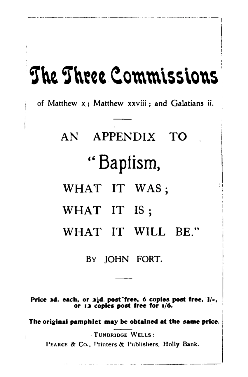 The Three Commissions. An Apendix to "Baptism, etc ... "