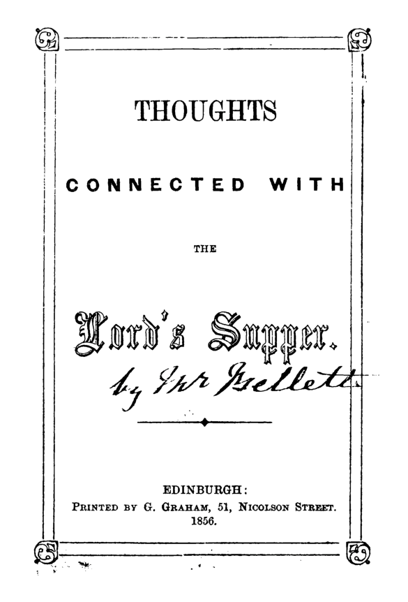 Just finished reading for the ??th time since having it gifted to me by a Brethren friend over 30 years ago and came to this website to learn more about Mr Bellett. Wanted to read Thoughts on the Lord's Supper but it seems I don't have the authority to open the link. Can you help? Thank you and may the Lord bless you