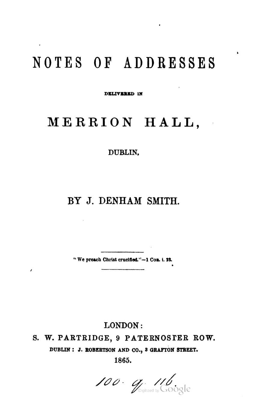 Notes of Addresses Delivered in Merrion Hall, Dublin