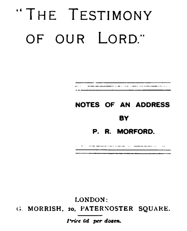 "The Testimony of our Lord." Notes of An Address