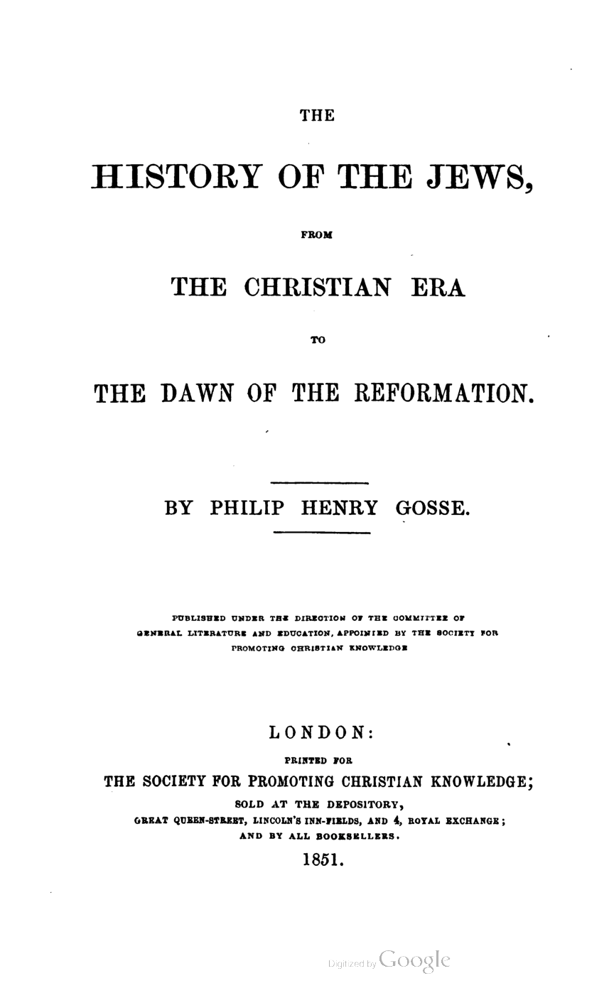 The History of the Jews, from the Christian Era to the Dawn of the Reformation