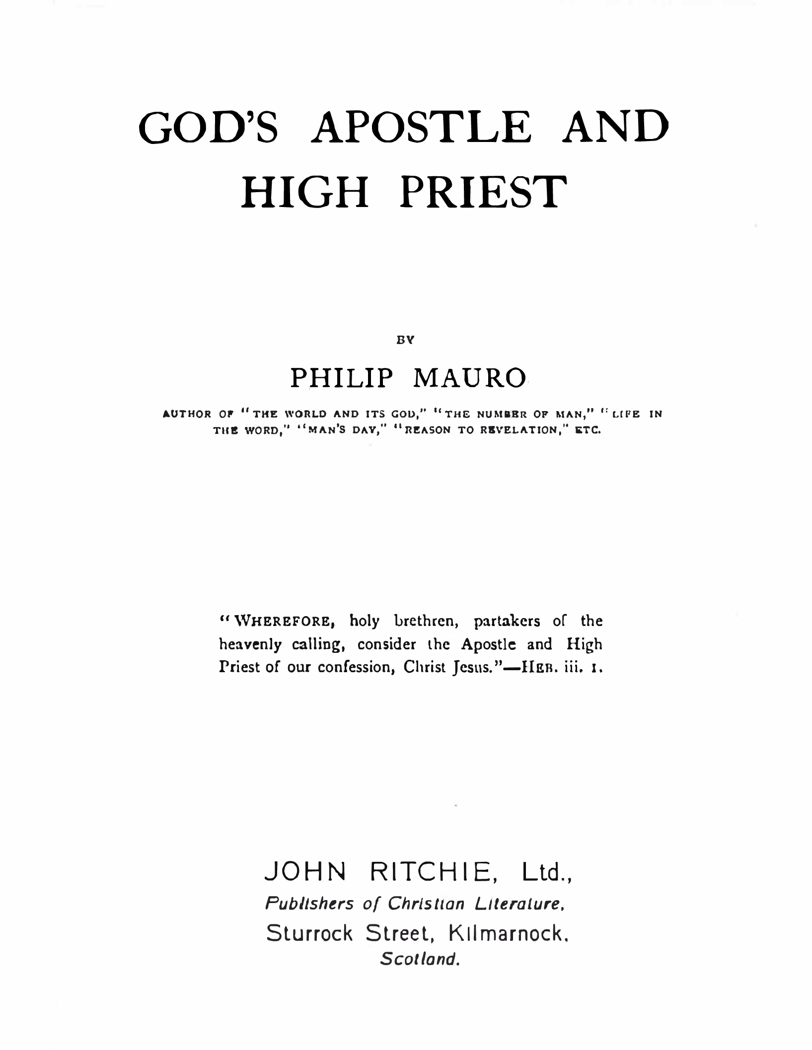 God's Apostle and High Priest