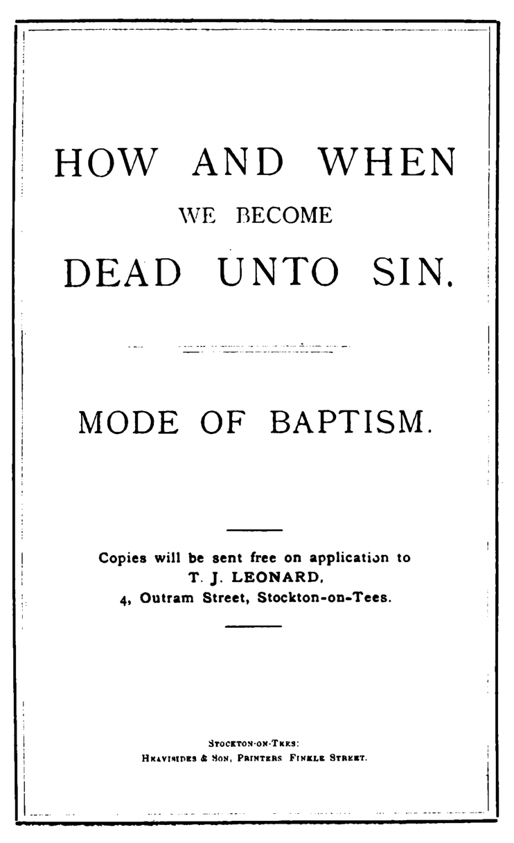 How and When We Become Dead Unto Sin. And, Mode of Baptism