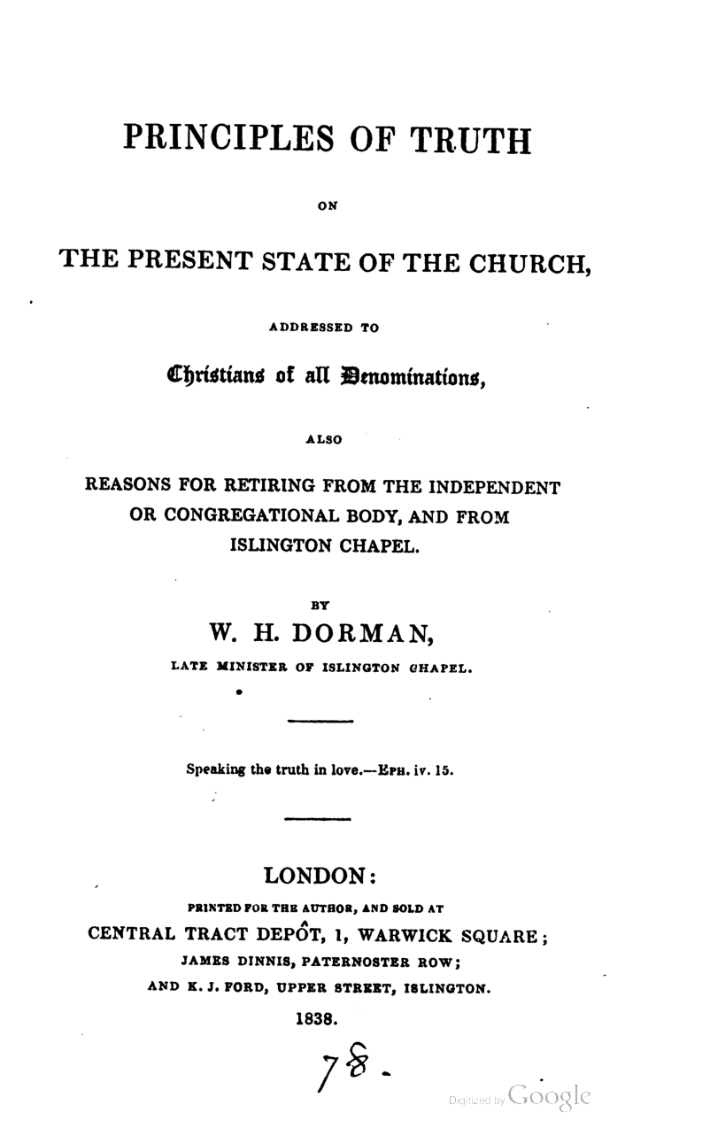 Principles of Truth on the Present State of the Church