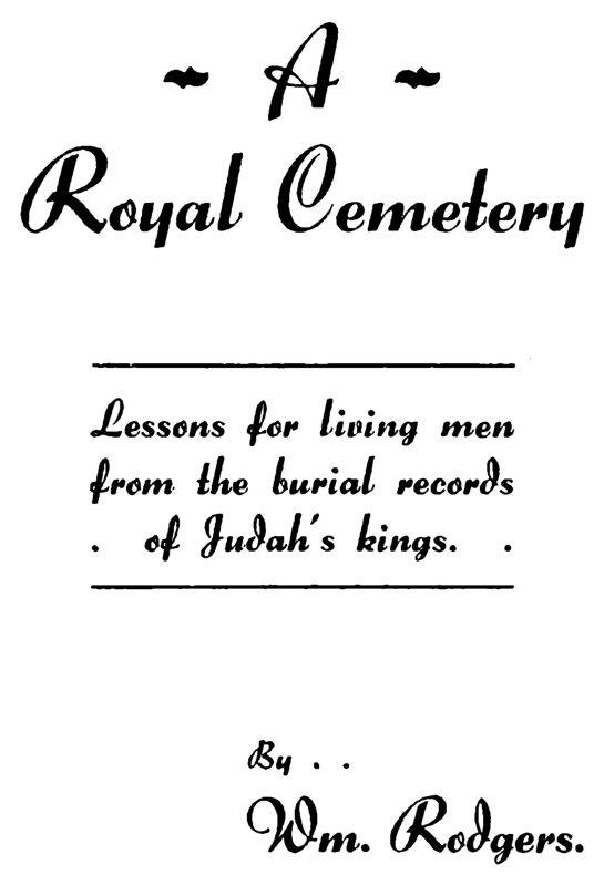 A Royal Cemetery. Lessons for Living Men from the Burial Records of Judah's Kings