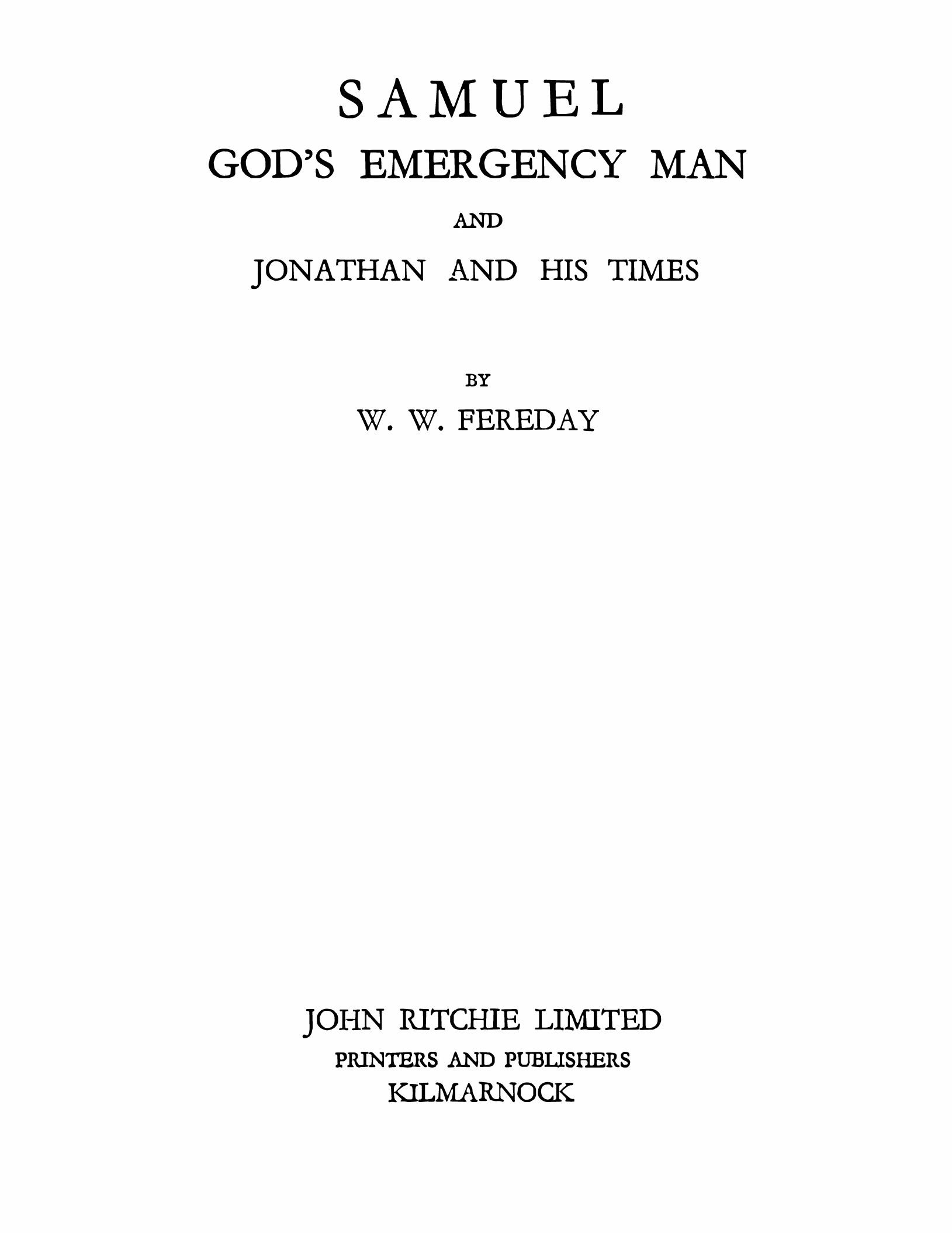 Samuel God's Emergency Man AND Jonathan and His Times