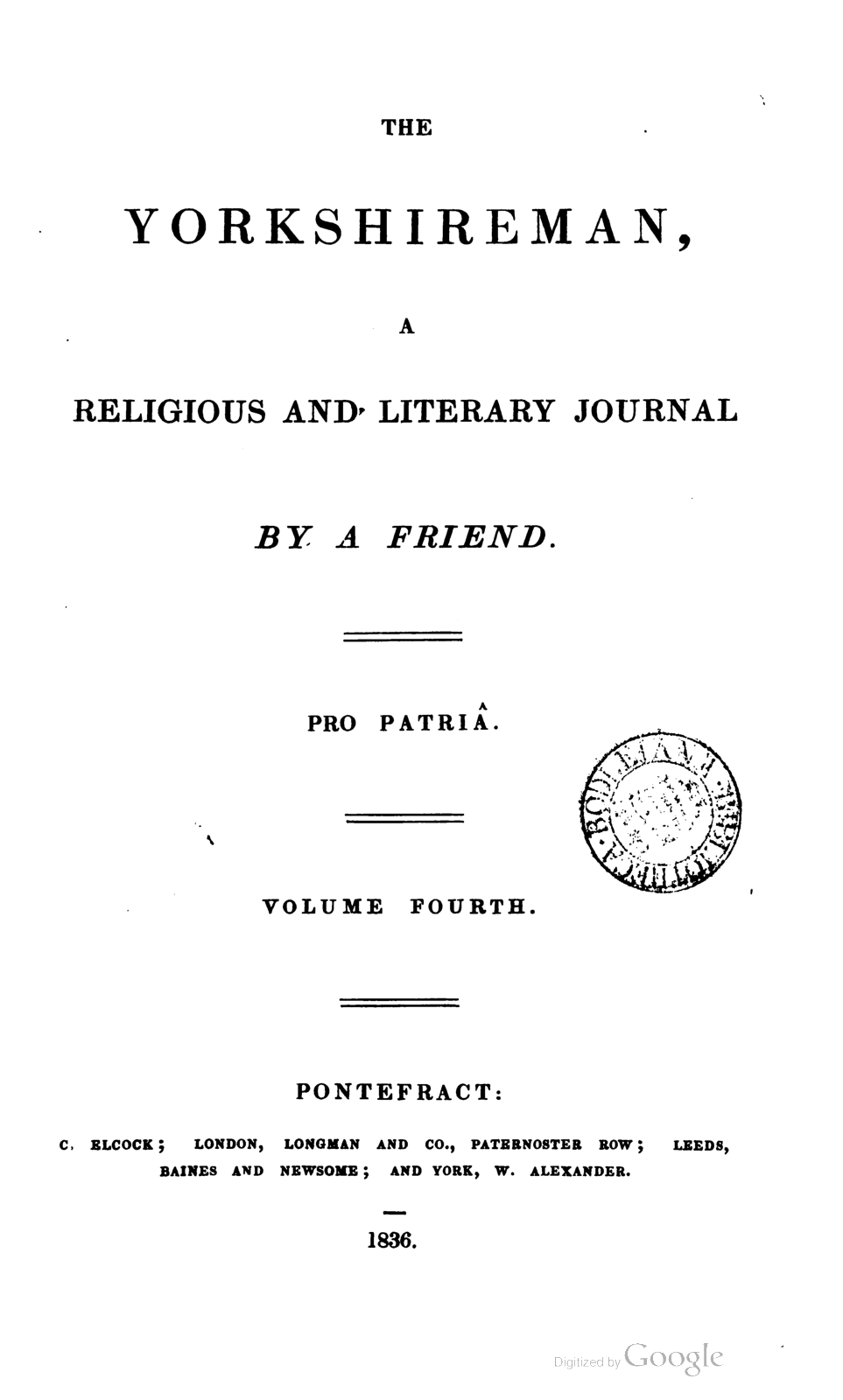 The Yorkshireman, a Religious and Literary Journal, by a Friend