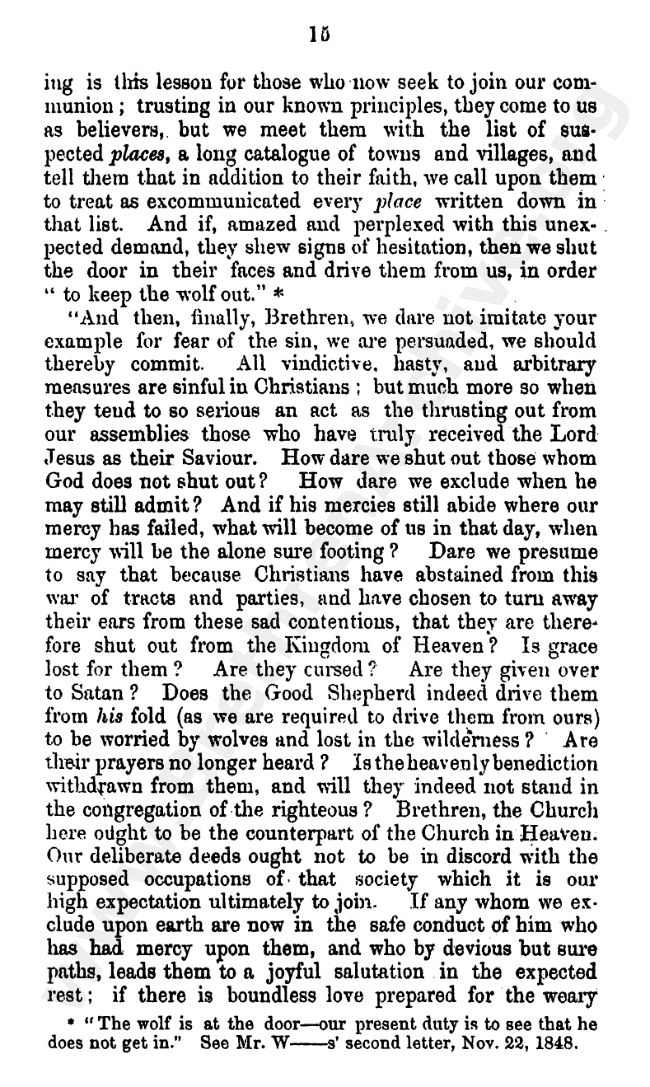 Interesting letter written against the division. Unsure who the author is, style is similar to those of Andrew Jukes, though signed diferently?