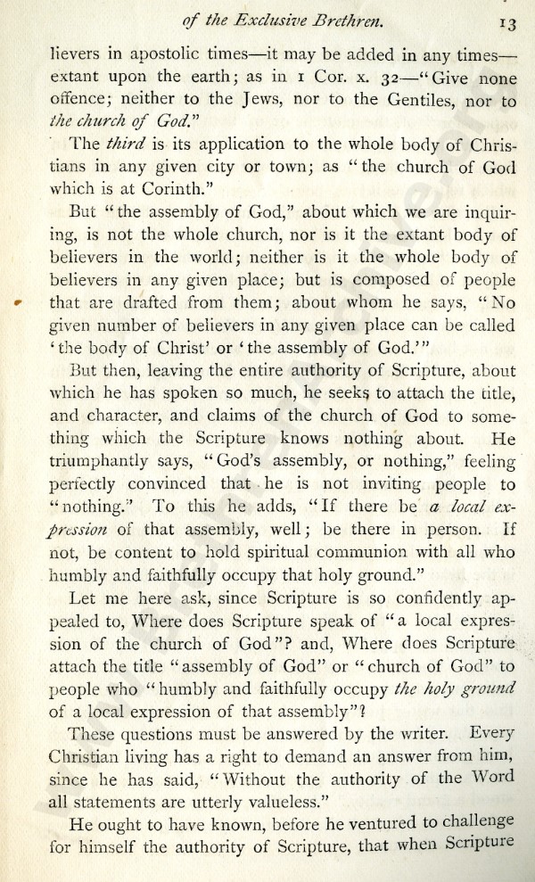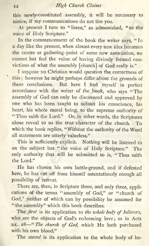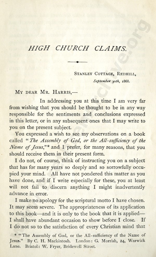 High Church Claims of 'The Exclusive Brethren', A Series of Letters to Mr J.L. Harris - Letter 1