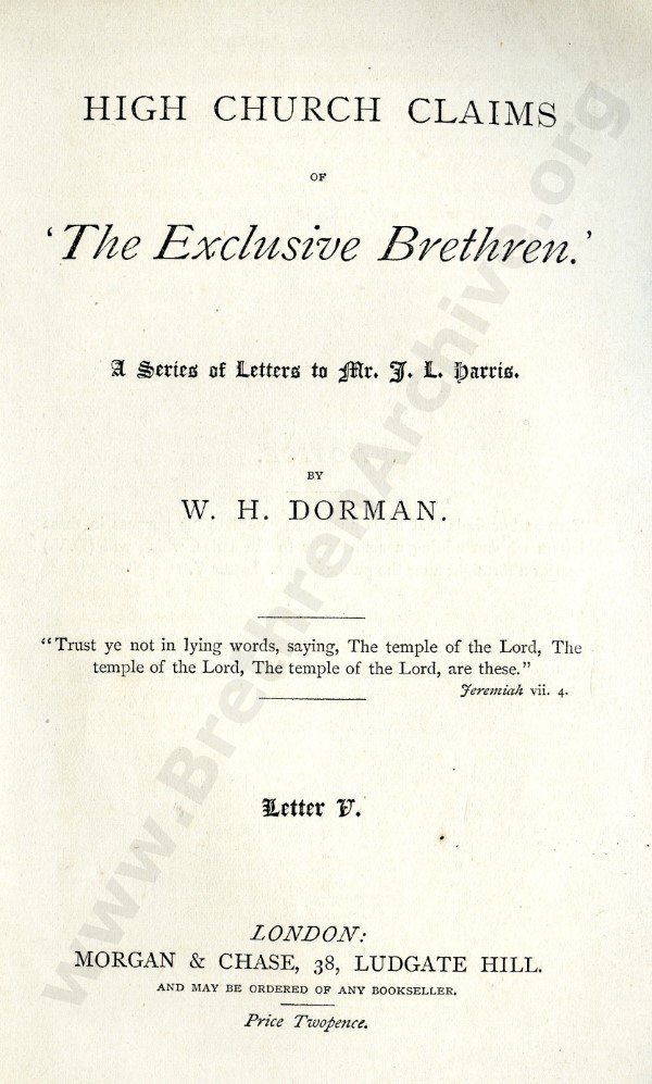 High Church Claims of 'The Exclusive Brethren', A Series of Letters to Mr J.L. Harris - Letter 5