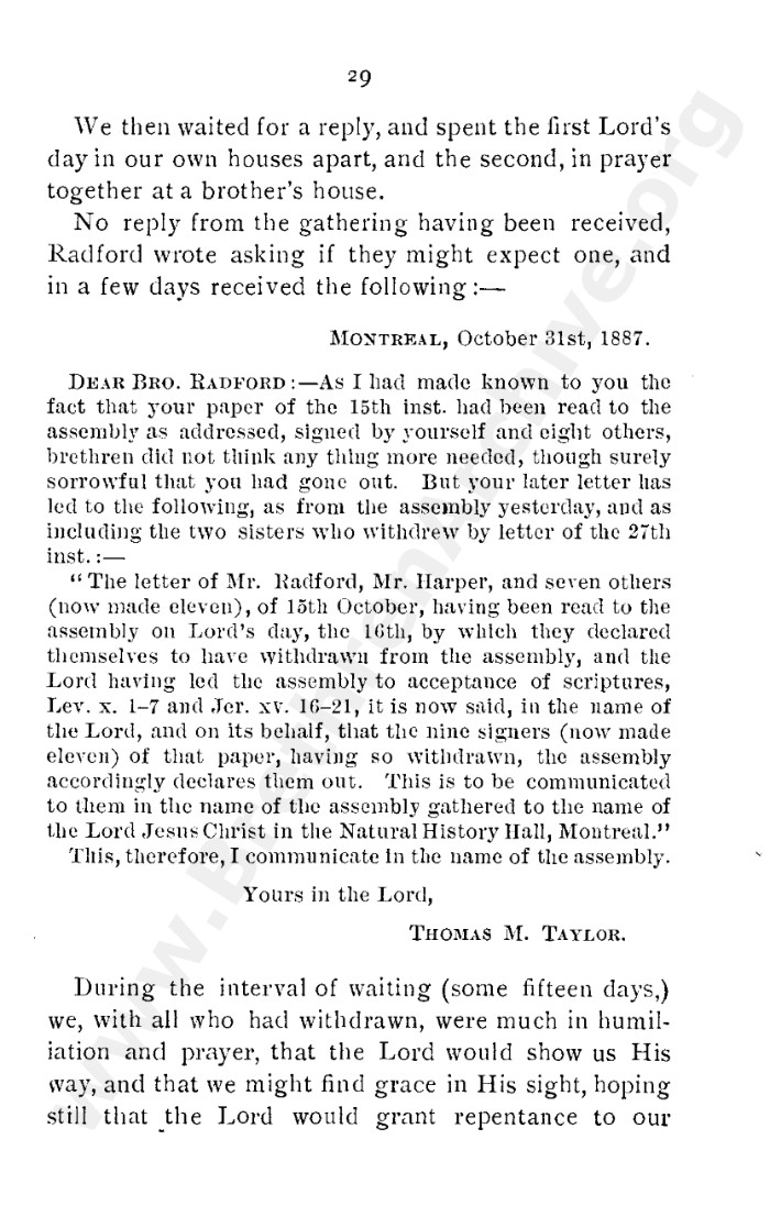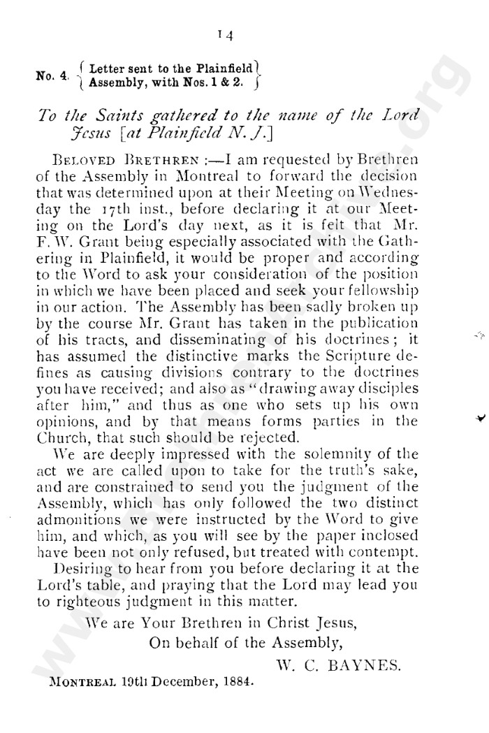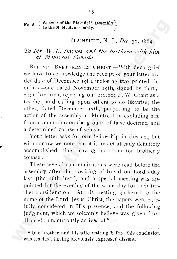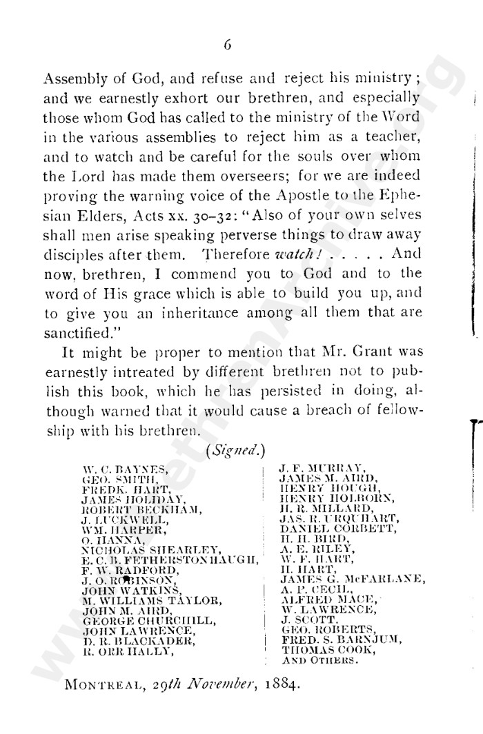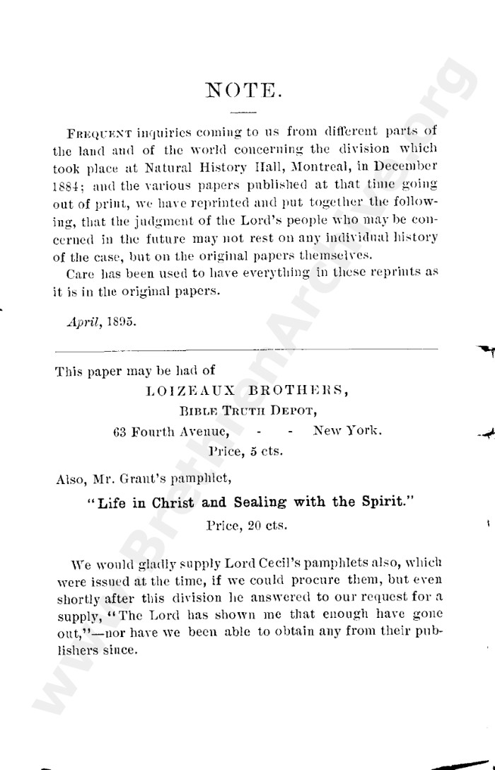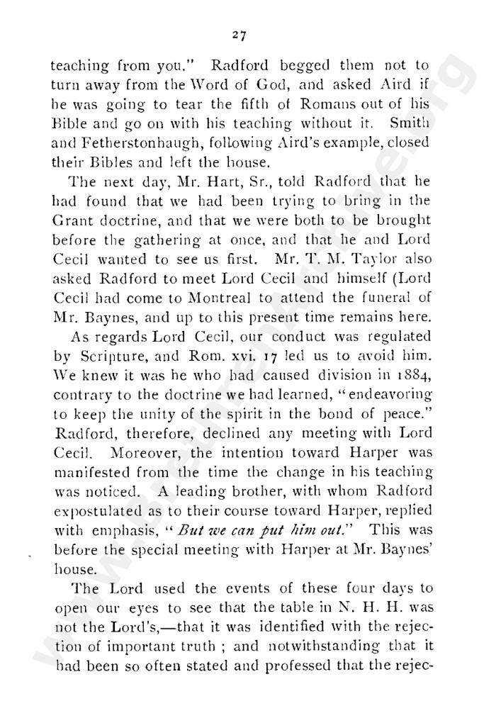 A collection of papers that gives good insight into what is known as the Grant division. Thankfully in the reunion between the Grant and Kelly-Lowe brethren, the KLC brethren were free to acknowledge this act was 'sin and unrighteousness'. Amazingly the TW brethren will still hold this was 'of God', but their ecclesiastical position necessitates them to and shows the falsehood of the whole thing. Particularly liked this on the last page: "At the judgement-seat of Christ you cannot, as so many of you do now, shelter yourselves by saying the assembly decided, and you could not but concur. This may quiet your conscience here, but there "every one of us shall give account of himself to God." "
