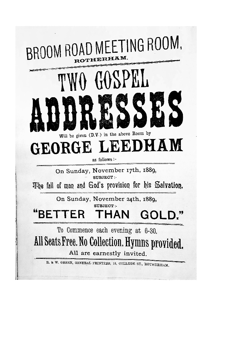 Two Gospel Addresses by George Leedham in Rotherham November 1889